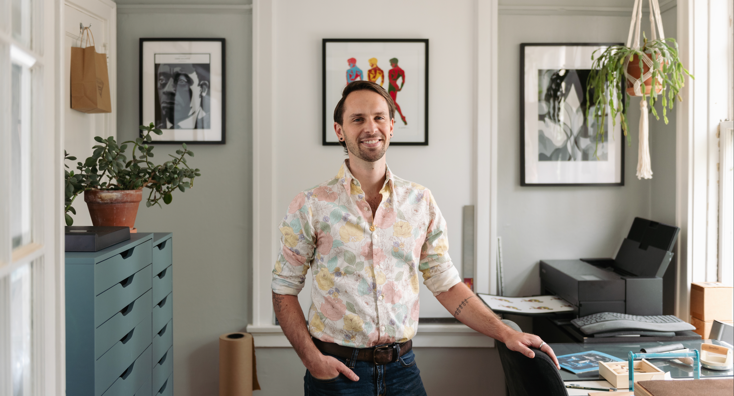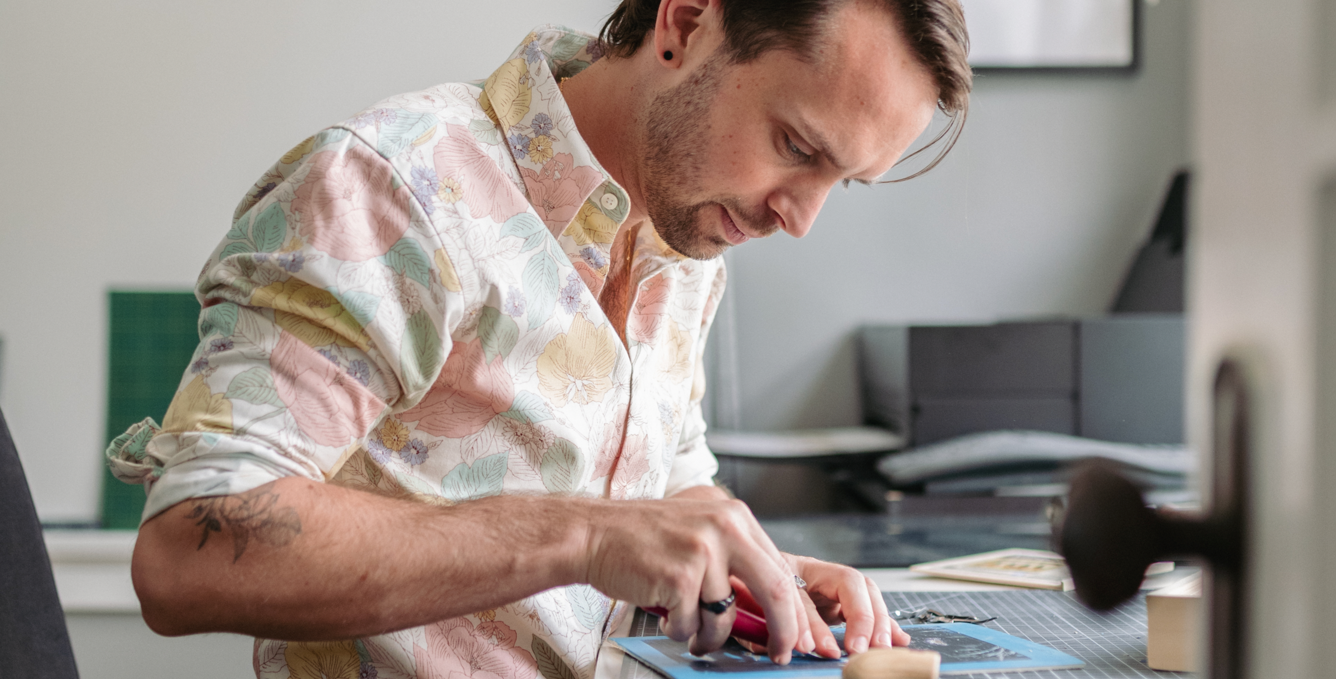 “My goal is to use art & design to celebrate queerness in all its forms. Whether it be on a mug, an art print, or carefully carved into lino, I seek to foster queer joy, pleasure and connection through my work.”