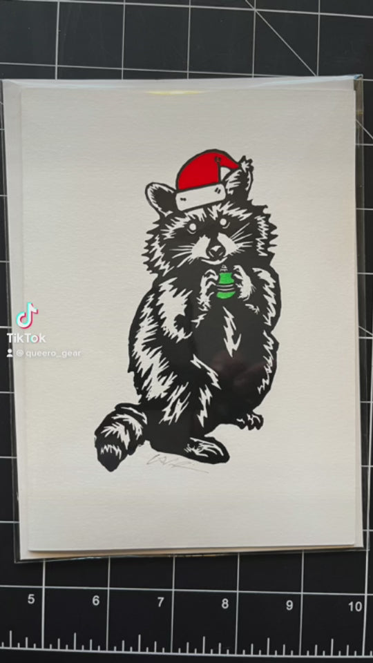 Pascal the Holiday Raccoon | Greeting Card | LINOCUT CARD